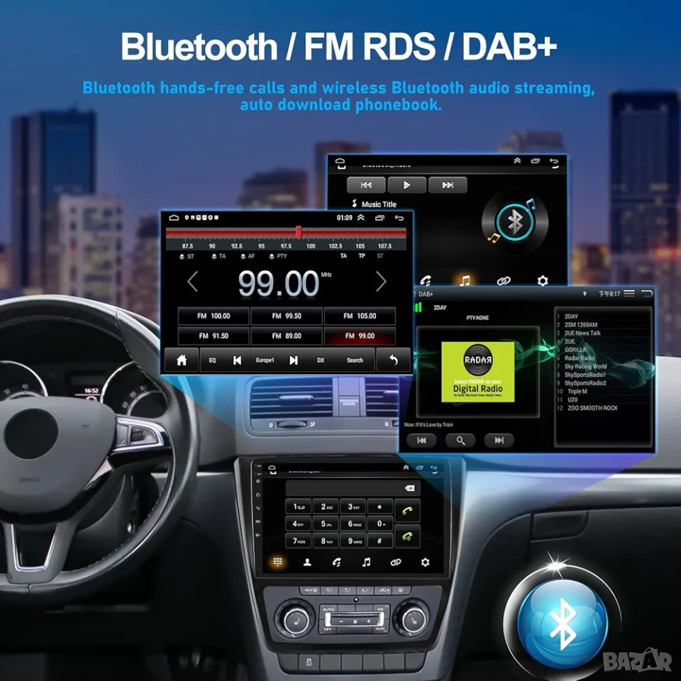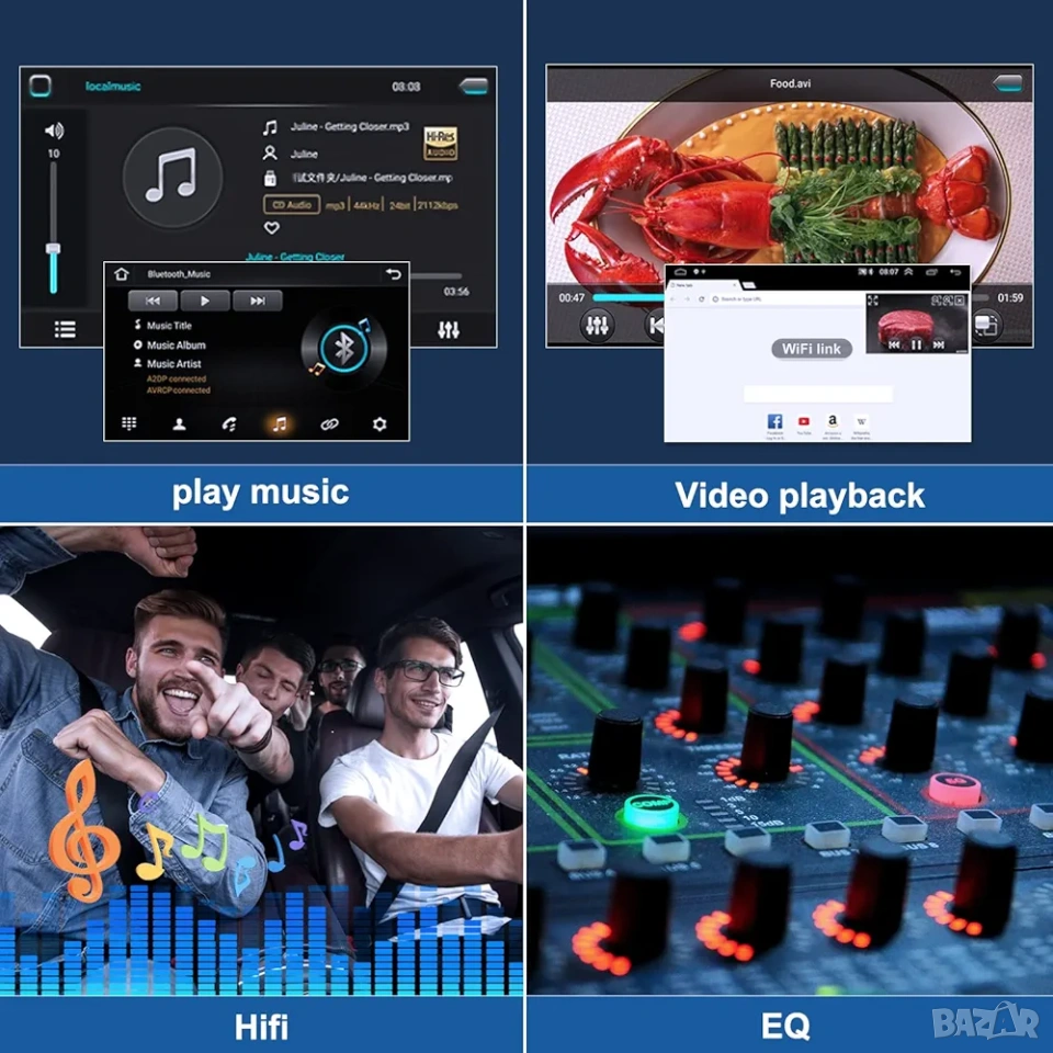 * Hi-Fi Аудио изживяване: Висококачествен звук с вграден еквалайзер (EQ) и FM/RDS радио тунер с 18 запаметени станции за новини и трафик информация в реално време.