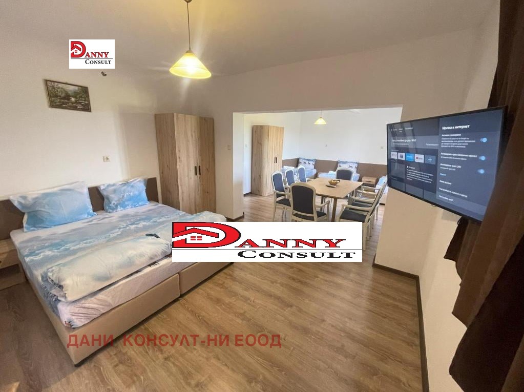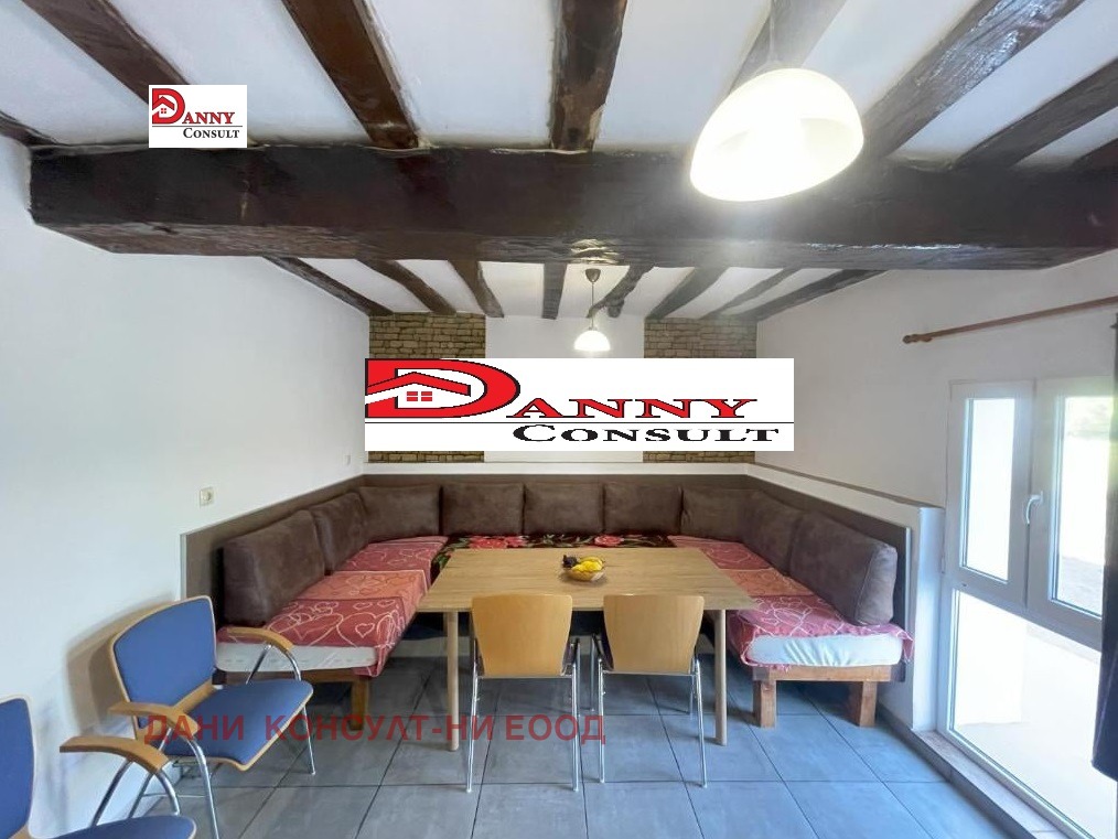 Имотът е с РЗП от 159 кв.м и има следното разпределение: Първи етаж - входно антре, две спални, дневна с кухненска част и баня с тоалетна в един обем. До вторият етаж се стига посредством външни стълби, където са разположени коридор, трапезария с кухня, две спални, веранда и баня с тоалетна. За отопление и охлаждане са монтирани климатици, жилището се продава с обзавеждането, във вида от снимките. Къщата е изцяло ремонтирана, подменени електро и ВиК инсталации, дограмата е PVC, вратите са MDF, подовите настилки са ламинат и теракот в кухните.