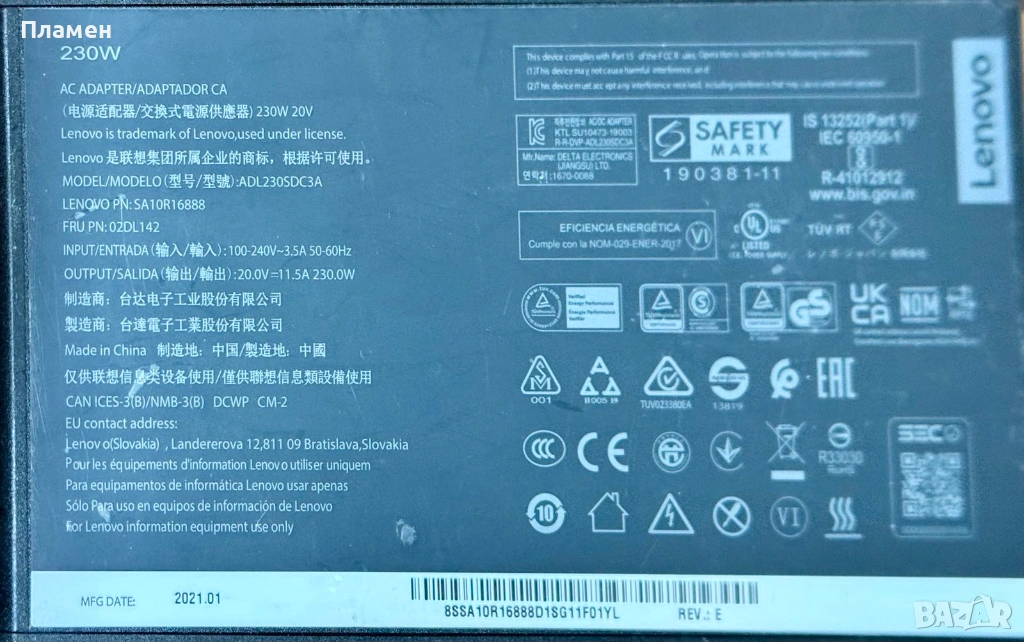 230w Lenovo OEM Charger / 230в Зарядно за Леново - Оригинално → Обява 53073676