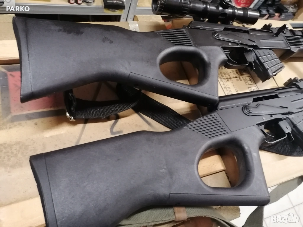 Перфектно техническо и визуално състояние. СЛР 95 калибър 7,62 х 39. SLR 95 H. Единия е в комплект с оптика. Този с оптиката е капариран.