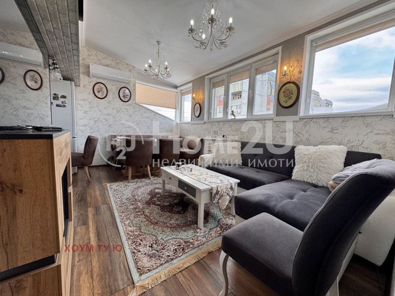 ОТЛИЧНА ЛОКАЦИЯ ! ! ! НАПЪЛНО РЕМОНТИРАН ! ! ! ИЗЦЯЛО ОБЗАВЕДЕН ! ! ! ТРИ ОТДЕЛНИ СПАЛНИ ! ! ! Представяме на вашето внимание четиристаен апартамент, на две нива - тип мезонет. Имотът е обединен от два апартамента, като всичко е напълно узаконено и направено спрямо всички изискуеми норми. Всички документи и архитектурни одобрения са налични и ще бъдат предоставени! САМОСТОЯТЕЛЕН ОБЕКТ! Жилището е със застроена, по документ за собственост, площ от 126 кв.м, разпределени по следния функционален начин: Първо ниво - входно антре, коридор, просторна спалня, заедно с мека мебел, втора спалня, баня, тоалетна и мокро помещение. Второ ниво - малък хол, голяма всекидневна с кухненски бокс, спалня и баня с тоалетна. Жилището е напълно реновирано, като се продава с цялото налично обзавеждане и електроуреди. Подменени ел. и вик инсталации, а отоплението е реализирано на ток, посредством климатици. Всичко е направено с вкус и много креативност. Входът е добре поддържан и с контролиран достъп. Мястото е повече от комуникативно, с разположени в близост спирки на градски транспорт, спортни и медицински центрове, детски градини, училища и магазини от големите хранителни вериги. За ваше улеснение прилагаме и схема на разпределение. При интерес, обади се сега и цитирай този код: 131985