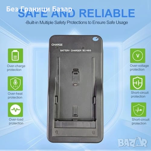 В комплекта: зарядно BC-V615 и 120 см UK захранващ кабел