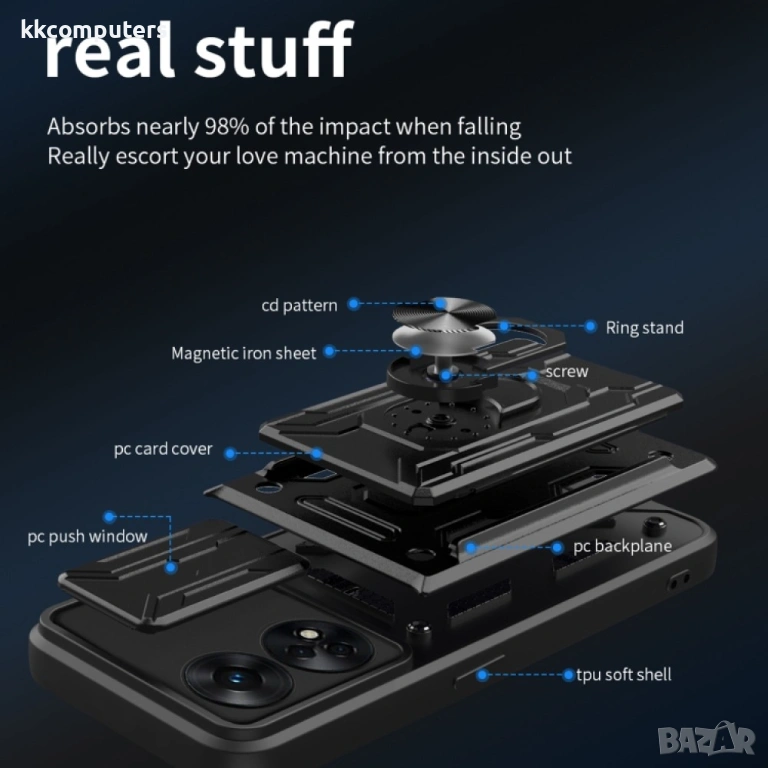 - Хибриден калъф, изработен от качествен и устойчив пластичен материал PU + TPU
