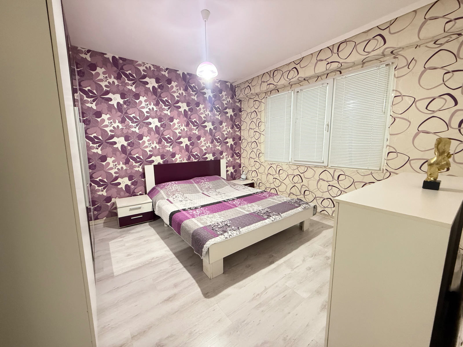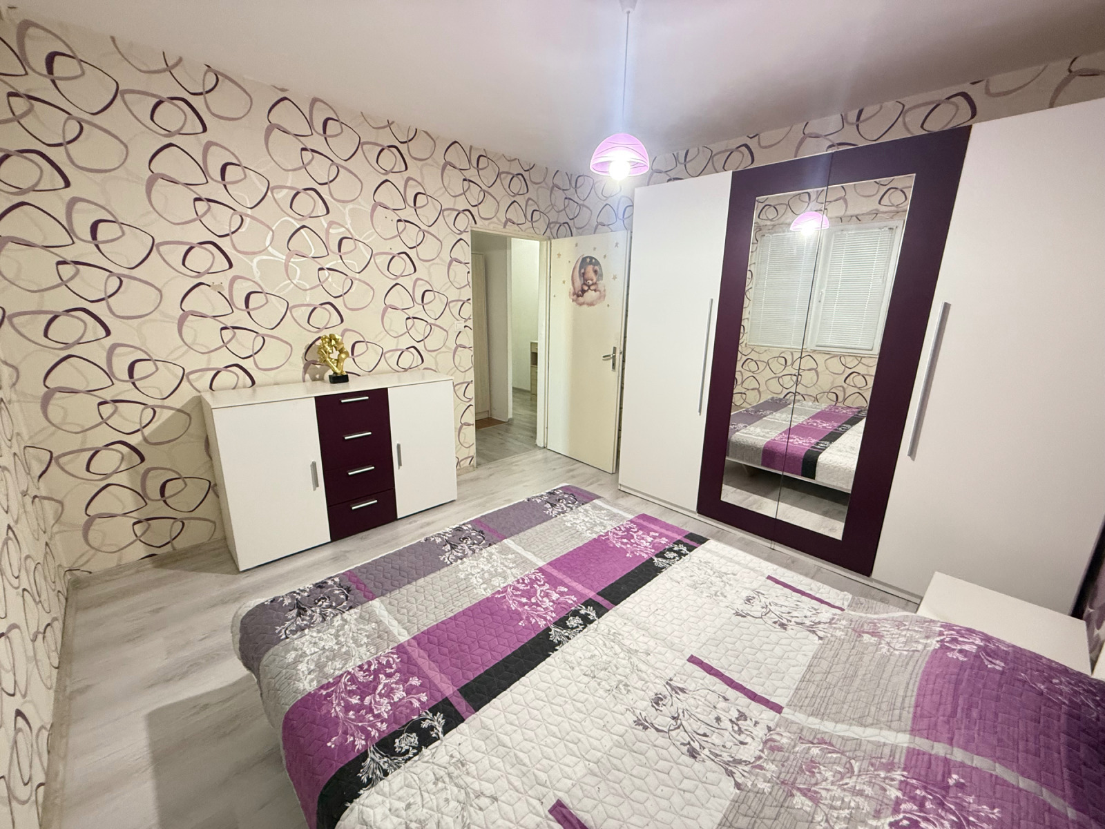 Спалнята е с нова мебелировка и чисто нов матрак на леглото.