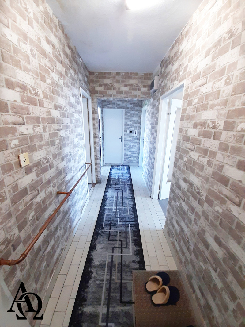 Имотът е с разположение както следва: широк коридор, всекидневна с излаз на двойна остъклена тераса, две отделни спални помещения, кухня с излаз на единична остъклена тераса, баня отделена от тоалетната. Имотът е за ремонт, но има характеристиките да бъде чудесен дом. Към имота има избено помещение - 5 кв. м. Пред имота има чисто нов асфалтиран паркинг със свободно място за паркиране.