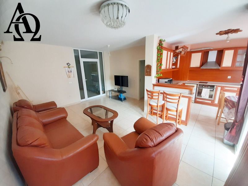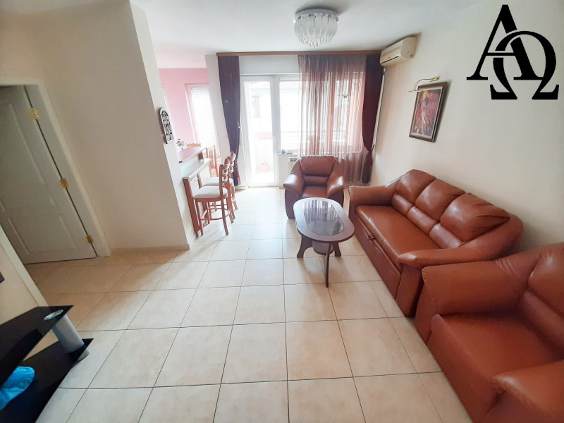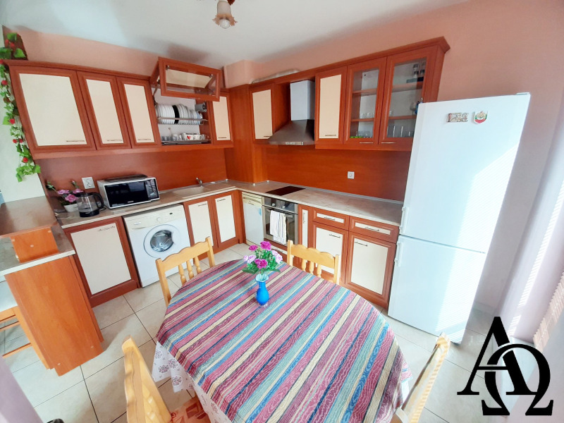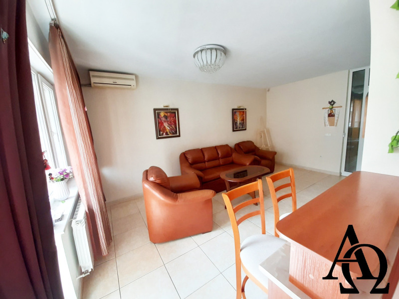 Апартаментът е напълно оборудван с всички необходими мебели и електроуреди. Отоплението е на централно парно, отделно са поставени и три климатика.