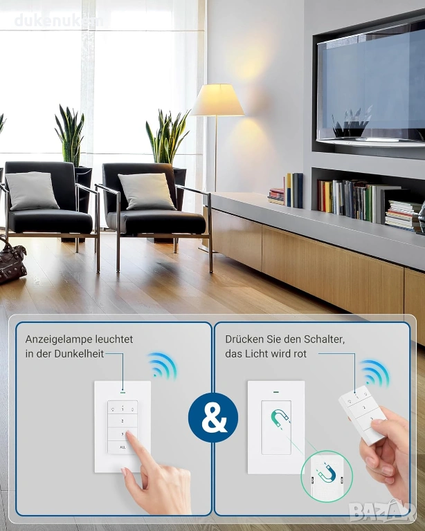 Подвижен стенен превключвател – магнитно закрепване, може да се използва и като преносимо дистанционно