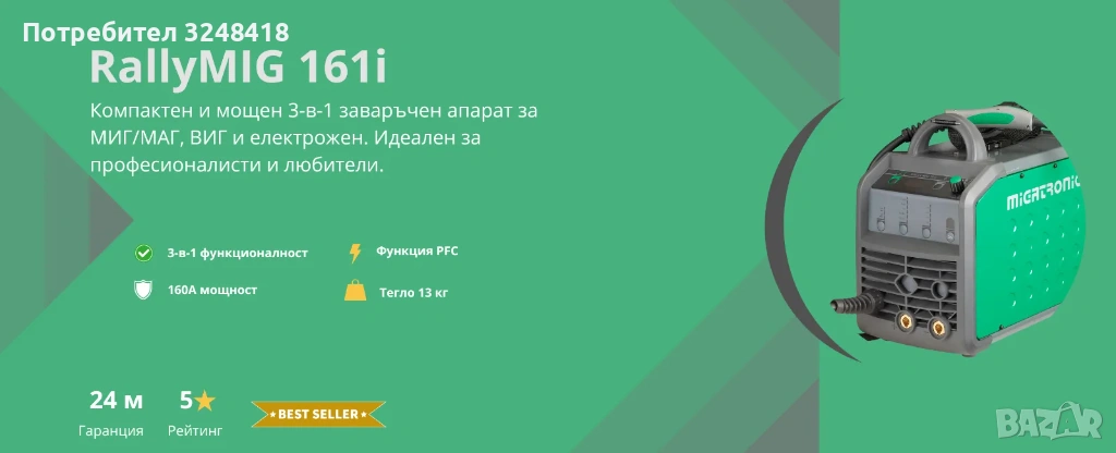 Продавам комбиниран заваръчен апарат RallyMig 160A на Migatronic - Дания. Чисто нов с 2 г. гаранция.