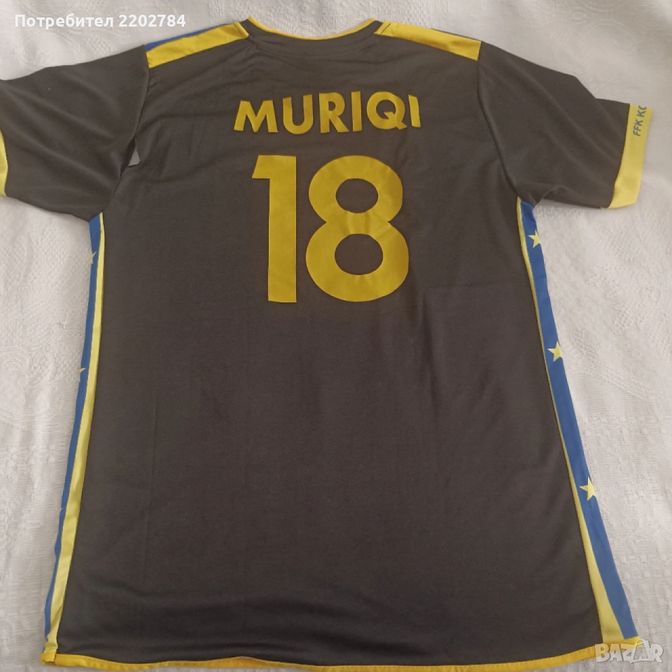 Снимки 13 и 14 - Косово.Тениската е нова,неизползвана,но с фабричен дефект - отзад на ръкава около 2 см тегела на шева е пропуснал ръкава.Вижда се на снимката на гърба на левия ръкав.Гръдна обиколка 104см, дължина 72см, размер М.