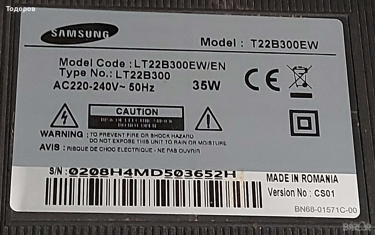 22" FHD Samsung LT22B300EW/EN телевизор/монитор с натиснат дисплей на части.Ако ви трябва нещо конкретно от него, питайте. Mainboard BN41-01798A BN94-05526E - 60лв, Power Board BN44-00505A - 40лв, матрица/дисплей(натиснат) - 20лв ...