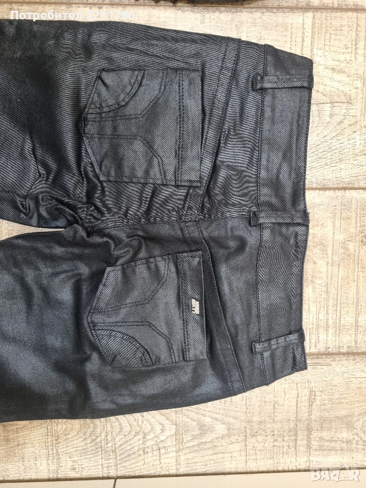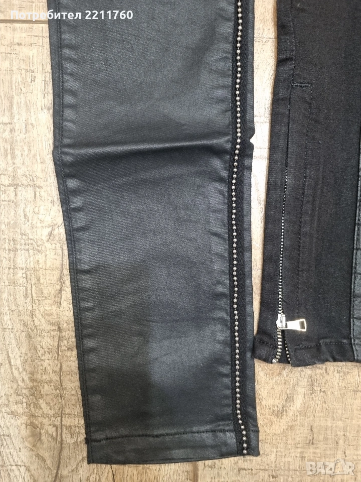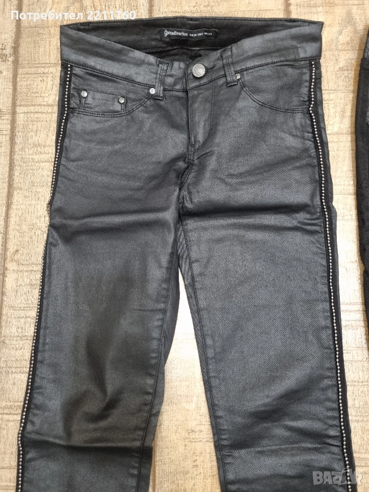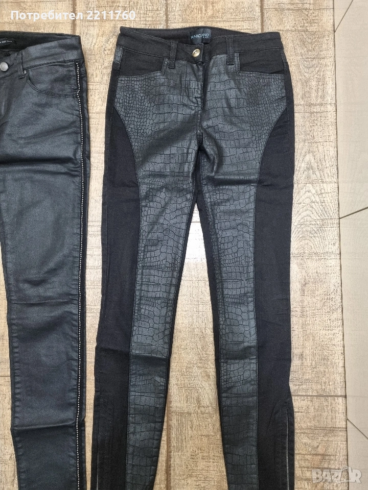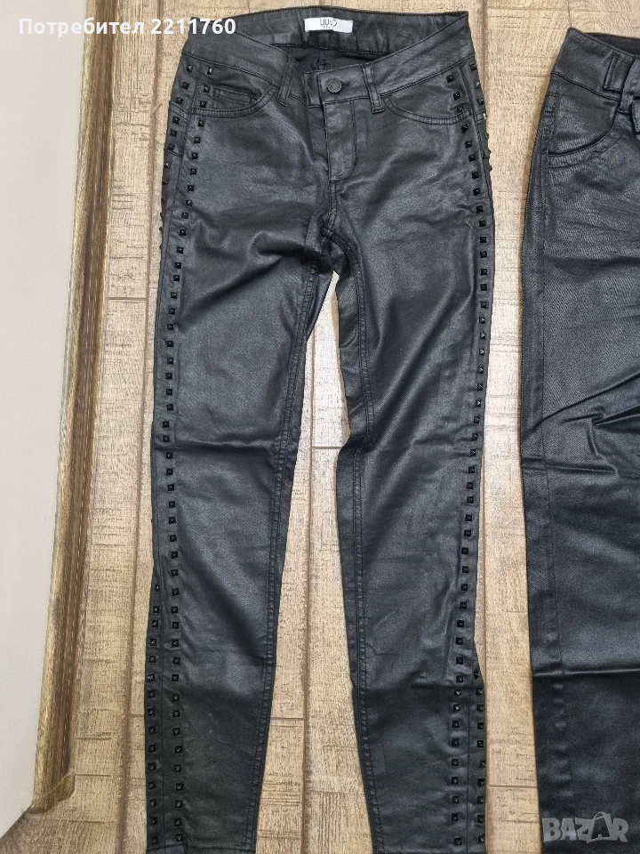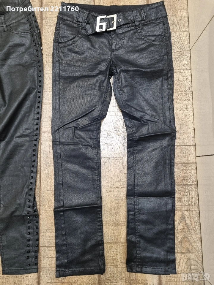 Дънки с кожен ефект на Guess, Miss Sixty, Stradivarius, Liu Jo. Като размер са XS, S. Нови само един чифт от тях е обличан веднъж. За цени на конкретен модел пишете.