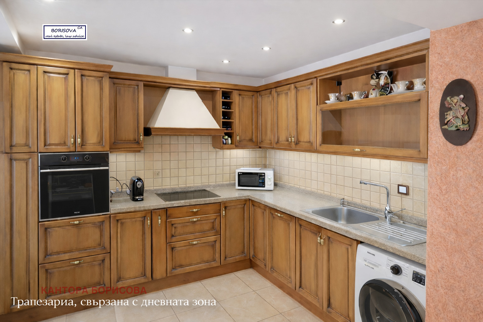 Просторна дневна зона с хол, трапезария и кухненски бокс