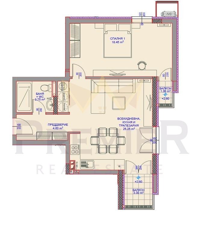 - Спалня 18.45кв.м
