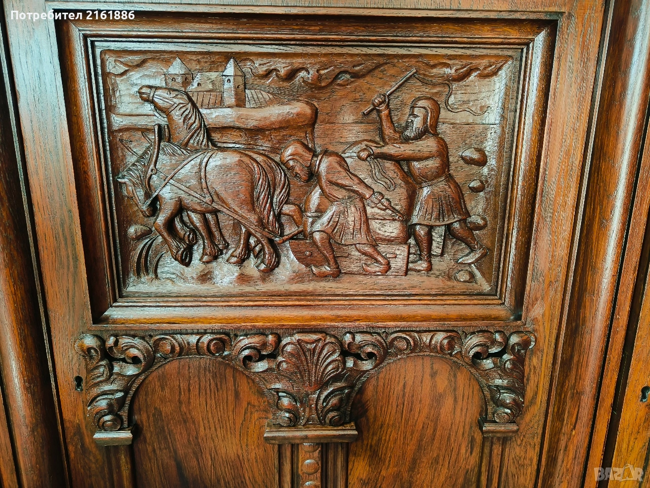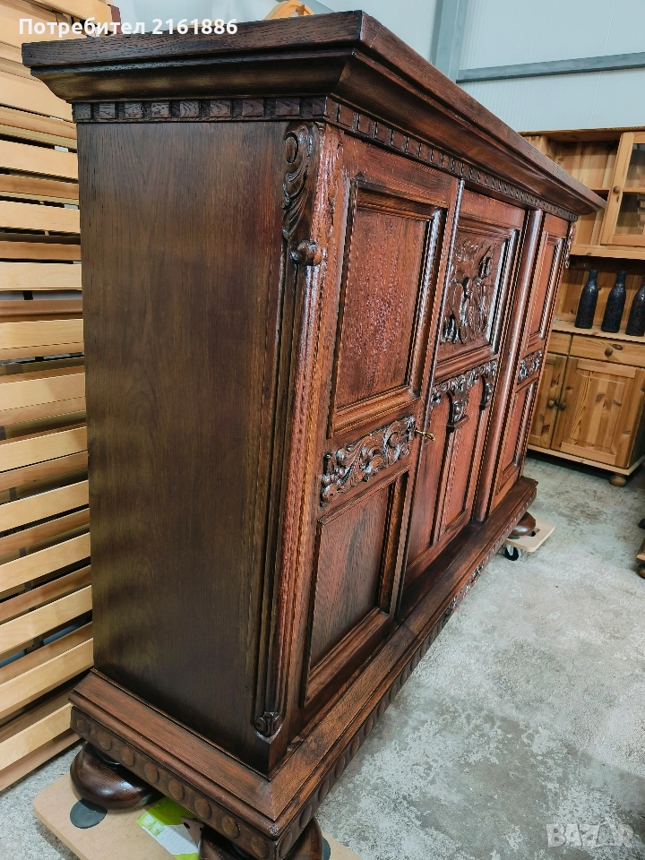 Красив дъбов шкаф с дърворезба → Обява 53075824