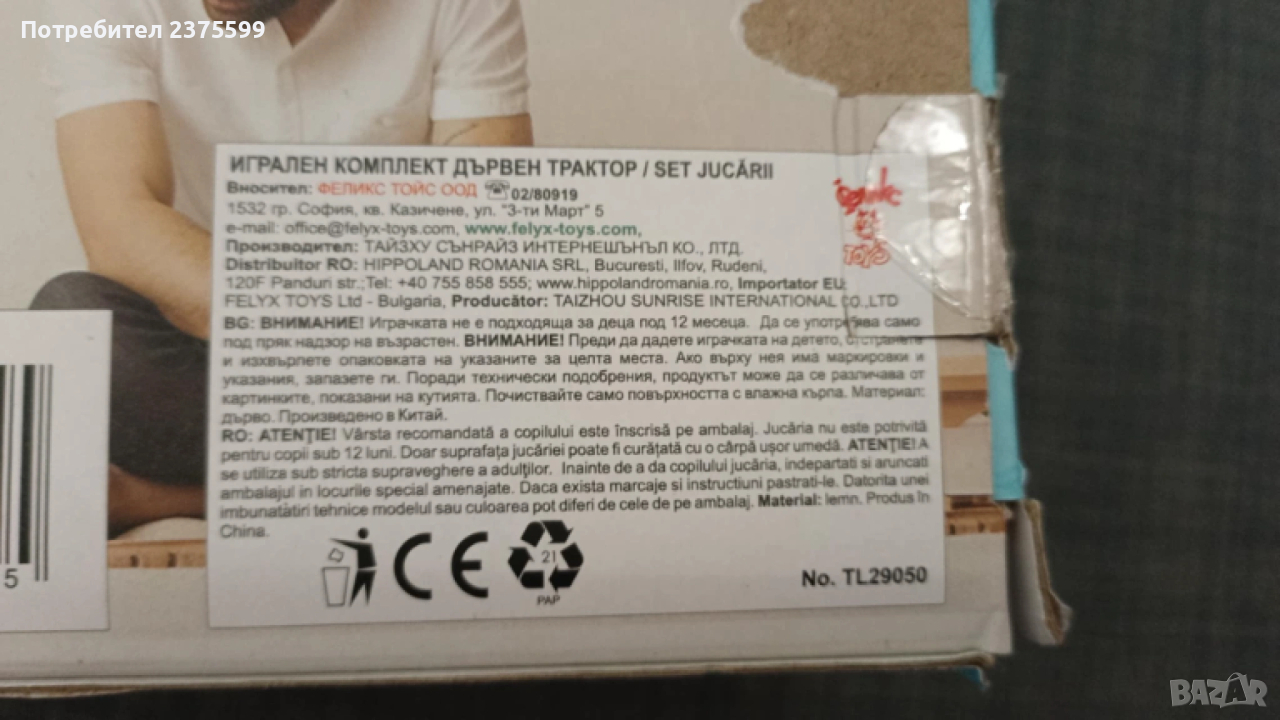 Дървен трактор с крава и кон Феликс Toys → Обява 53075826