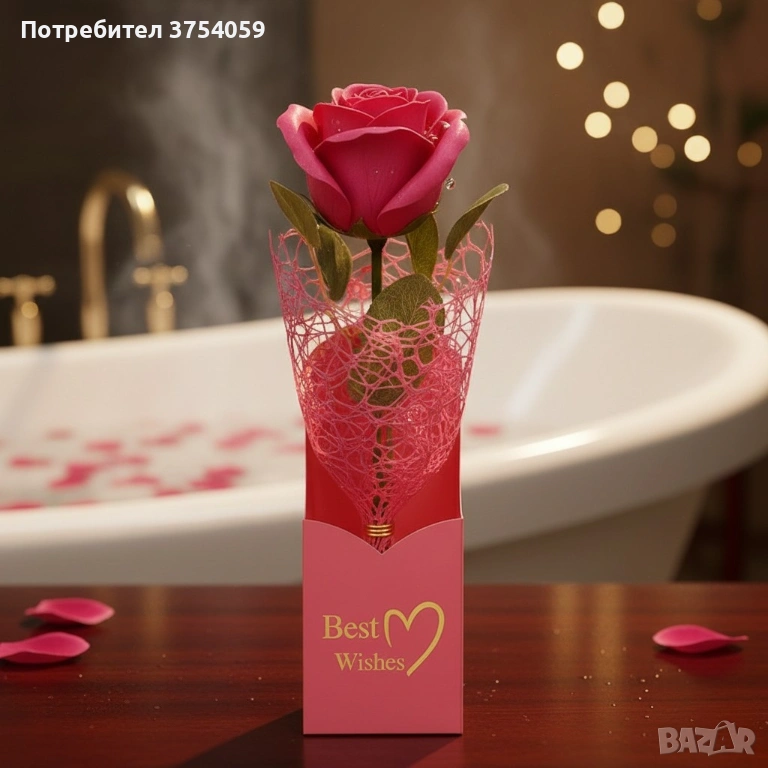 Декоративна единична роза в подаръчна кутия „Best Wishes“