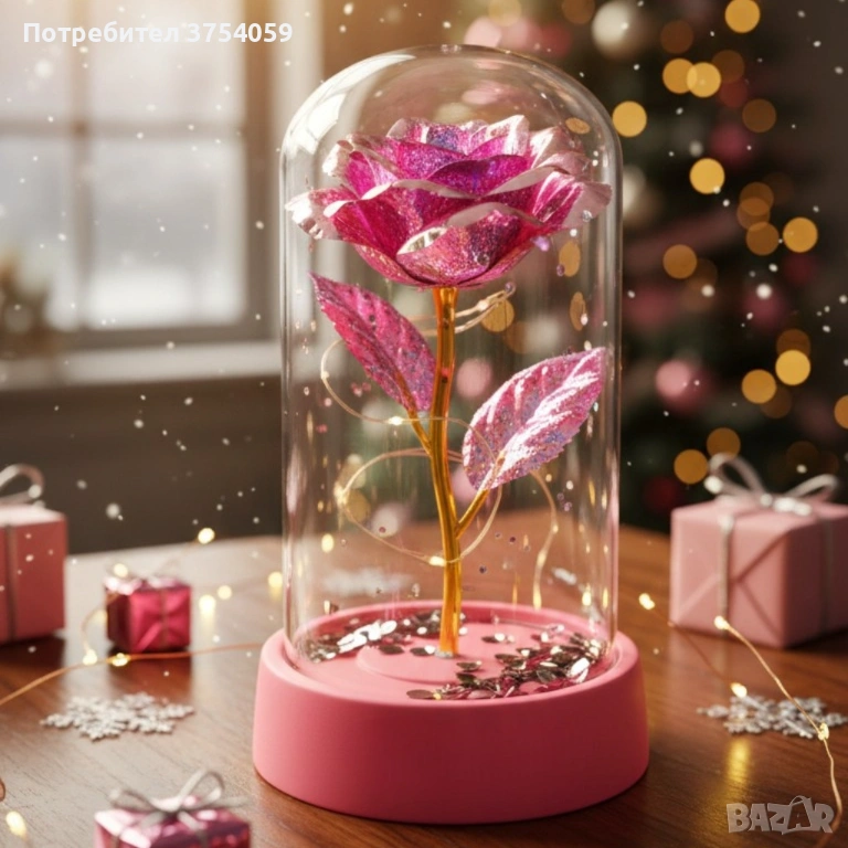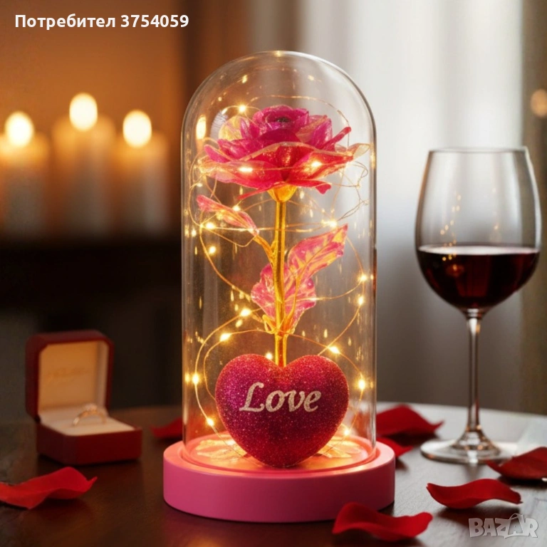 Светеща декоративна роза в купол - Светлина, романтика и любов