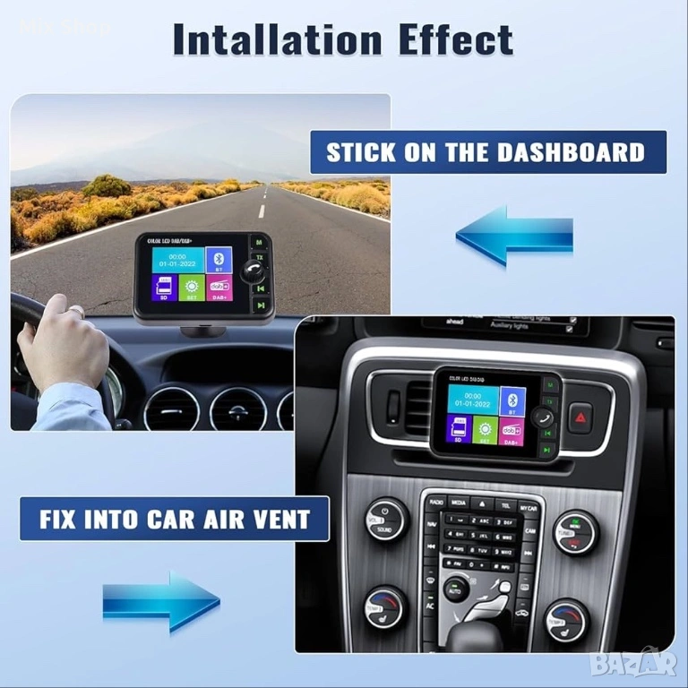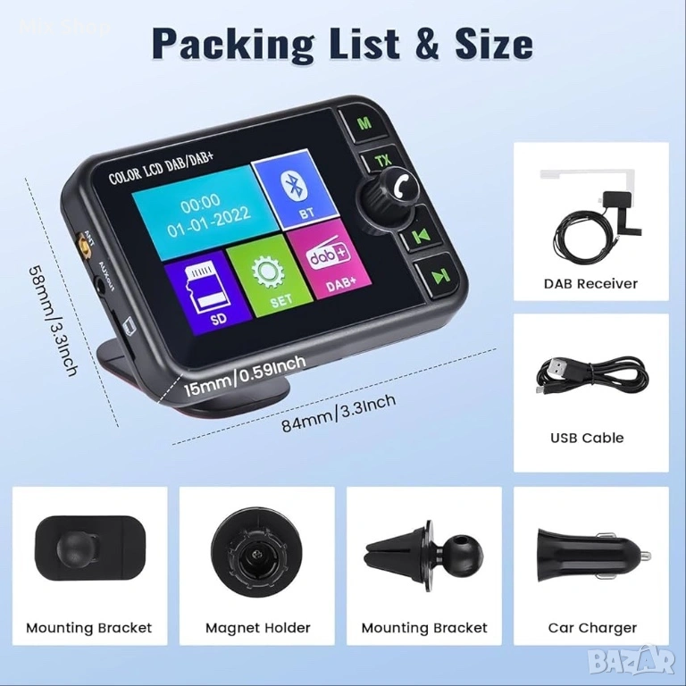 Лесен монтаж: DAB автомобилното радио се предлага с магнитен държач, което улеснява монтажа и регулирането на позицията на устройството. Това DAB автомобилно радио е малко и заема малко място, но е многофункционално.