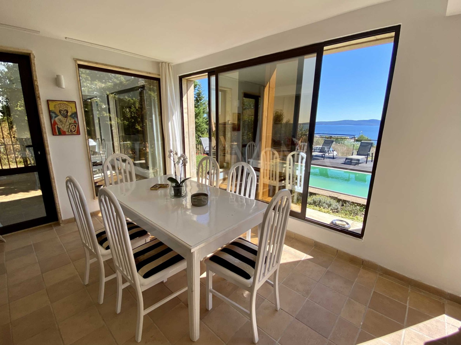 Вилата разполага с красив басейн, с уникална морска панорама и зона за релакс. Басейнът е 8х4 м, дълбок 140 см.