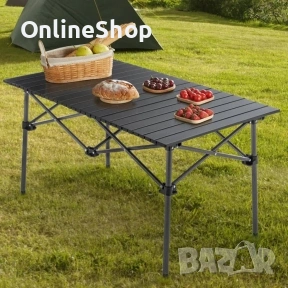 Сгъваема къмпинг маса, 95x56x50 см, стоманена конструкция, плот от алуминиева сплав, черна, комплект от 4 части
