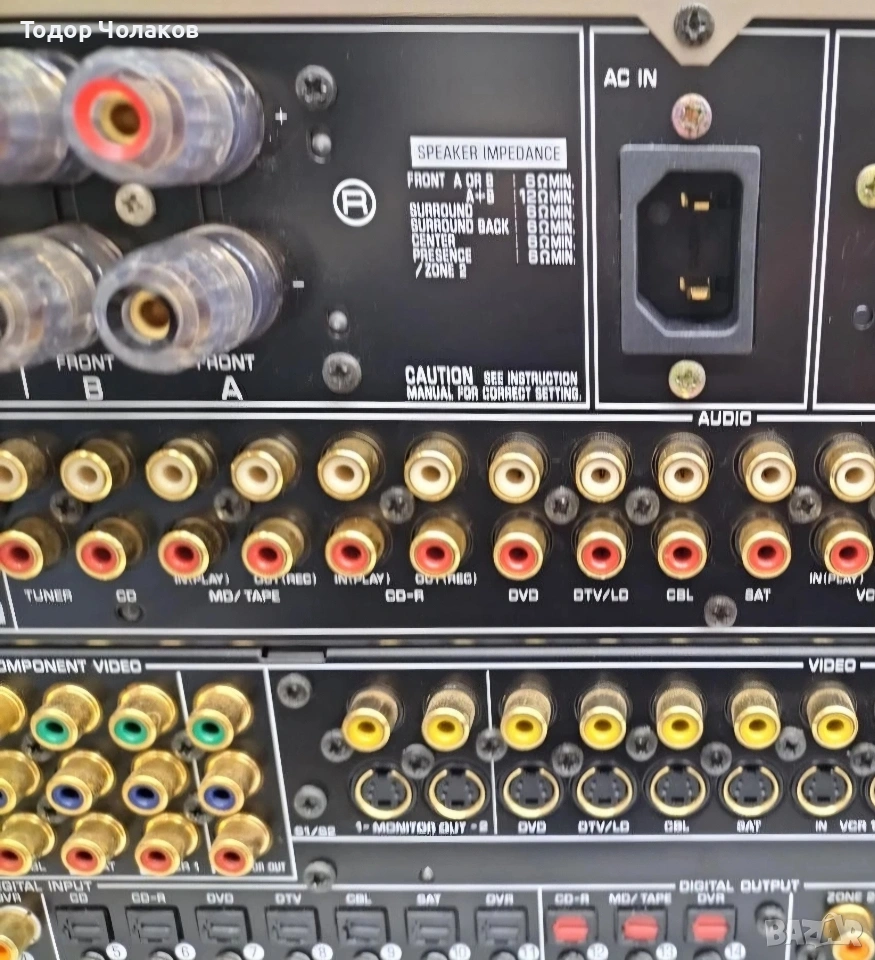 Други връзки: iLink (IEEE1394), RS-232, вход/изход за дистанционно управление 1, вход за дистанционно управление 2, 12V изход за управление, AM антена, FM антена, AC вход, 2 комутируеми AC контакта