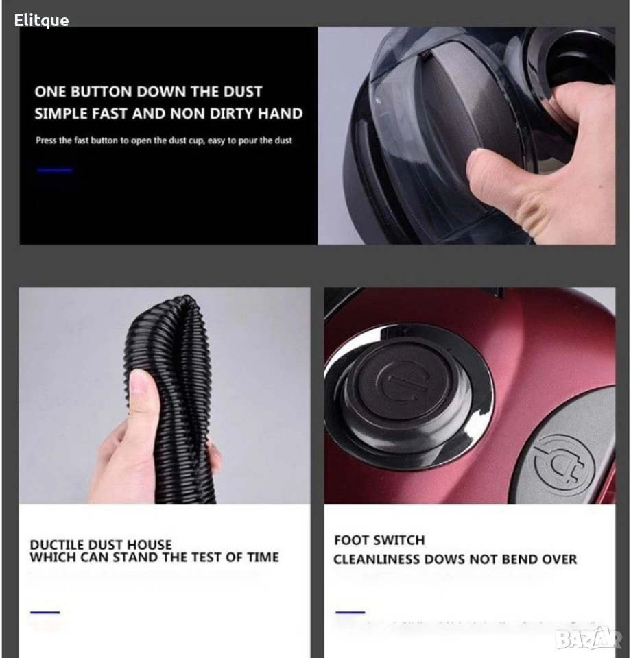 Прахосмукачка ELITE VC-1322 с мощност 800W, енергиен клас "А", високоефективна четка за под