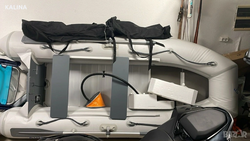 Надуваема лодка с твърдо дъно и надуваем кил ADMIRAL AM-305 AL/ Извънбордов двигател HONDA BF6DH SHU, 6A генератор 12V - практически нови на не повече от 15 часа.