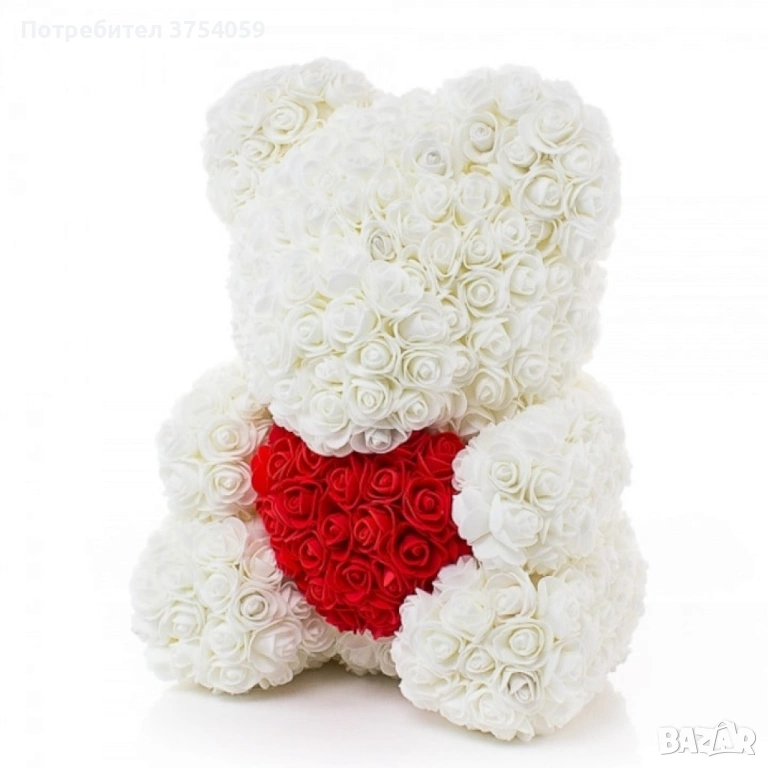 Мече от рози, 25см с подаръчна кутия в 3 цвята