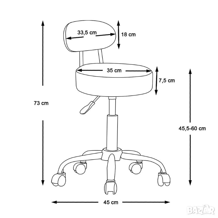 • Тип: козметична / медицинска табуретка с облегалка