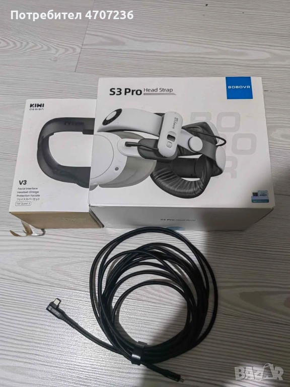 Quest 3 128 GB +Bobovr s3Pro head strap+kiwi facial interface+ кабел CкъмC 5метра още е в гаранция!