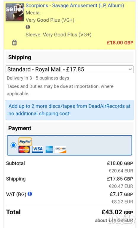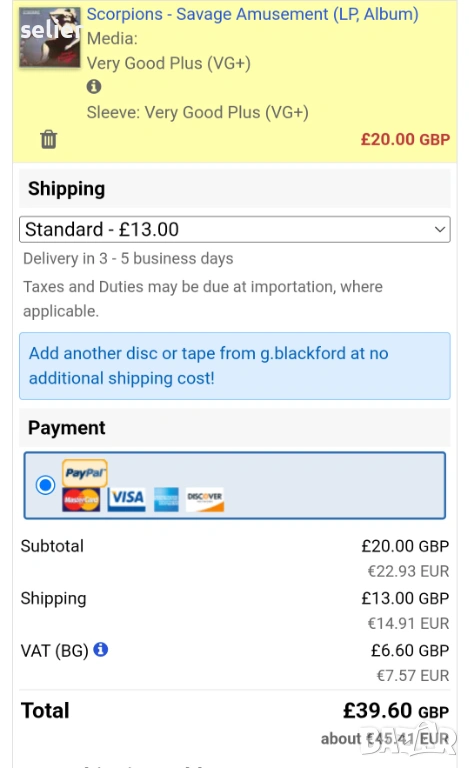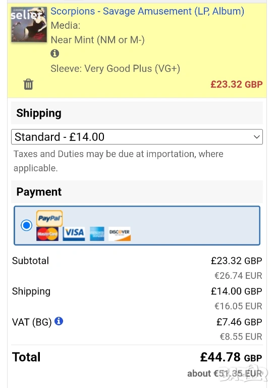 Състояние на обложката:VG+