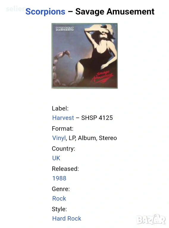 Scorpions ‎– Savage Amusement Издание 🇬🇧 UK 1988г Състояние на винила:като звук и двете страни са → Обява 53077588