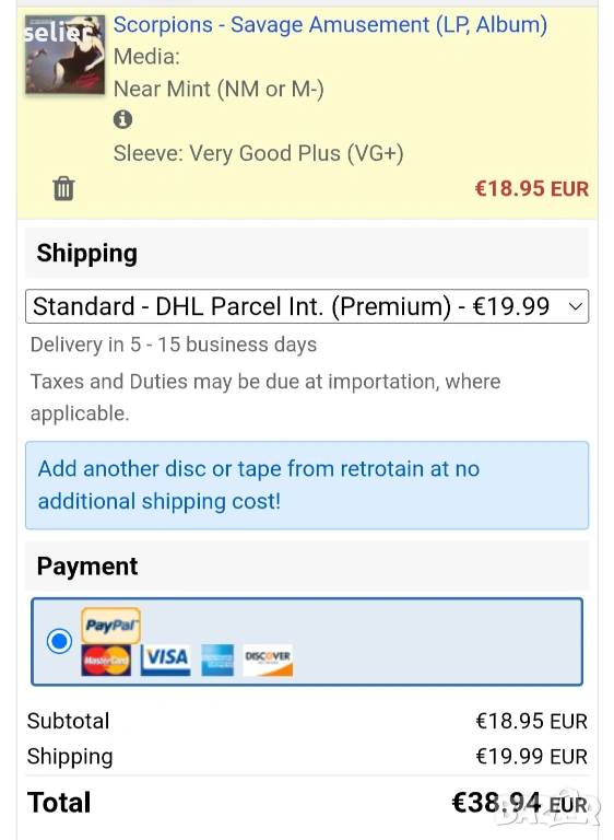 Оригинален вътрешен плик:NEAR MINT