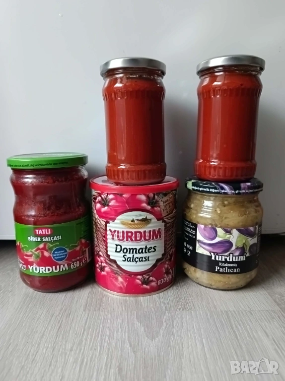 Турски зимнини доматено пюре,пиперково пюре,патладжан и лютеница → Обява 53077591