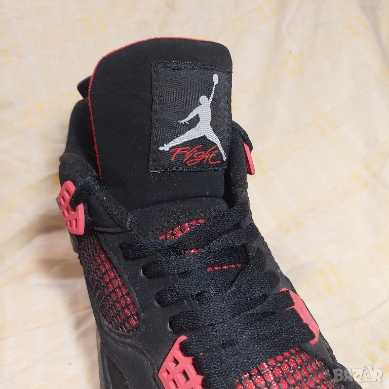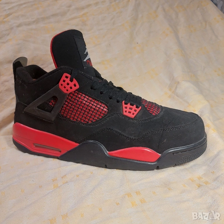 Air Jordan 4 Retro "Red Thunder". Тези маратонки са известни със своя емблематичен дизайн в черно и червено.