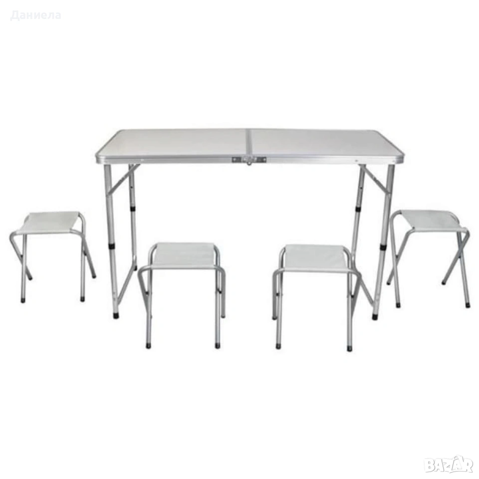 Комплект сгъваема алуминиева маса с 4 стола → Обява 53078558