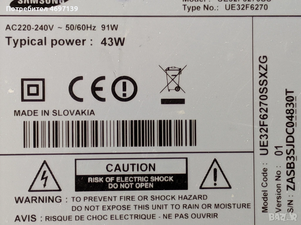 SAMSUNG UE32F6270SSXZG-BN41-01958B-BN44-00615А-BN41-01938 → Обява 53078561