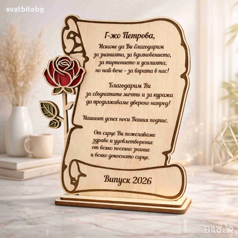 Изберете надпис и снимка по ваш вкус – изработваме дървени рамки, магнитчета, картички, персонализирани плакети, сувенири и още, които носят емоция, внимание и топлина.