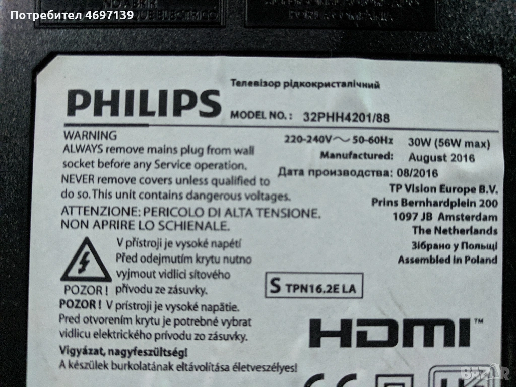PHILIPS 32PHH4201/88-715G6947-М01-000-004Y-715G7734-P01-000-002H , снимка 1 - Части и Платки - 53079094 PHILIPS 32PHH4201/88-715G6947-М01-000-004Y-715G7734-P01-000-002H , снимка 2 - Части и Платки - 53079094 PHILIPS 32PHH4201/88-715G6947-М01-000-004Y-715G7734-P01-000-002H , снимка 3 - Части и Платки - 53079094 PHILIPS 32PHH4201/88-715G6947-М01-000-004Y-715G7734-P01-000-002H , снимка 4 - Части и Платки - 53079094 PHILIPS 32PHH4201/88-715G6947-М01-000-004Y-715G7734-P01-000-002H , снимка 5 - Части и Платки - 53079094 PHILIPS 32PHH4201/88-715G6947-М01-000-004Y-715G7734-P01-000-002H , снимка 6 - Части и Платки - 53079094 PHILIPS 32PHH4201/88-715G6947-М01-000-004Y-715G7734-P01-000-002H , снимка 7 - Части и Платки - 53079094 PHILIPS 32PHH4201/88-715G6947-М01-000-004Y-715G7734-P01-000-002H , снимка 8 - Части и Платки - 53079094 PHILIPS 32PHH4201/88-715G6947-М01-000-004Y-715G7734-P01-000-002H , снимка 9 - Части и Платки - 53079094 1/9