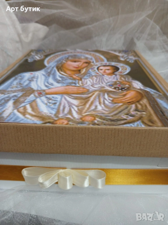 Комплект за Свето Кръщение в бароков стил с иконата на Йерусалимкса Света Богородица . Комплектът включва