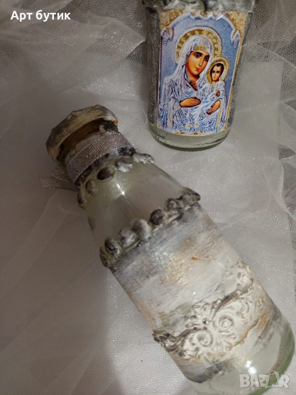 - 20 броя подаръци за гости - свещ със тематична икона, мини шише ракия или бурканче с мед