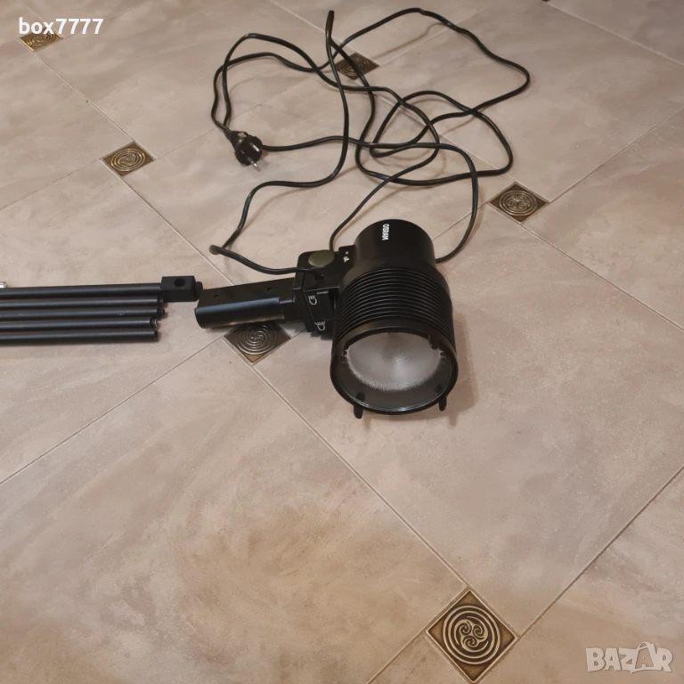 Мощна осветителна лампа Osram предназначена за студия, сцени и други. Монтира се на стойка, която е част от комплекта. Произведена е преди 1970 год. Не е използвана. Работи. Включва се към 220 в. Максимална мощност 1000 вата.