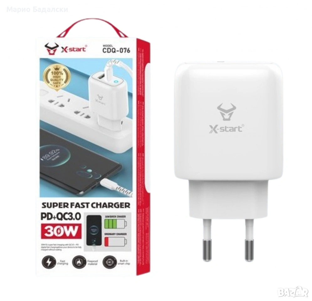 - Мощност: 30W (QC3.0 + PD)