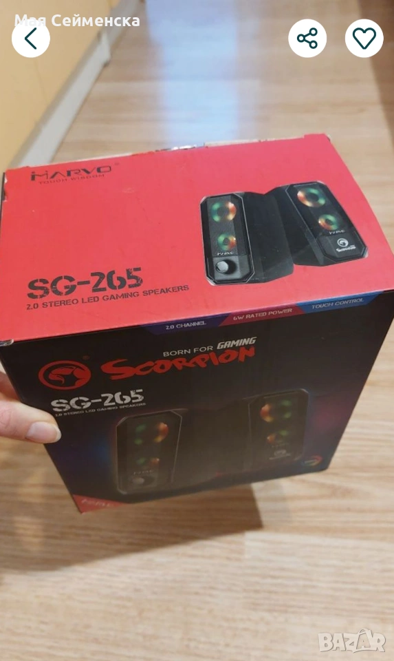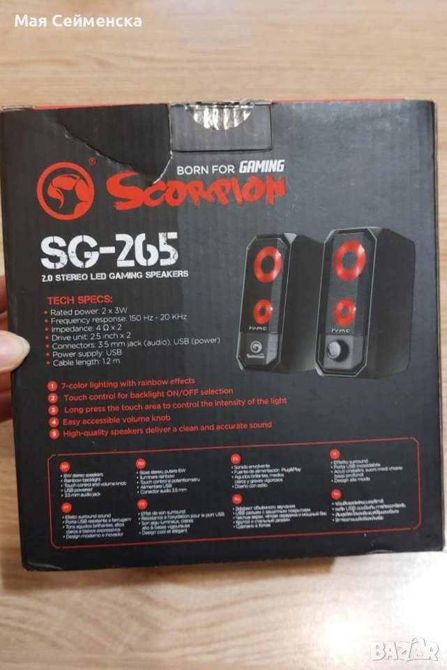 Продавам 2 жични тонколонки марка MARVO Scorpion SG-265, 2.0 Stereo LED Gaming Speakers. Характеристики: