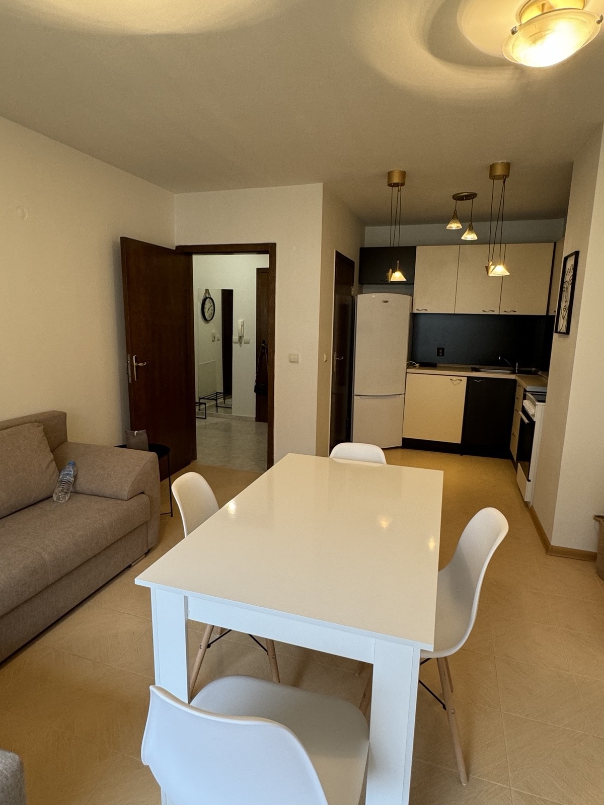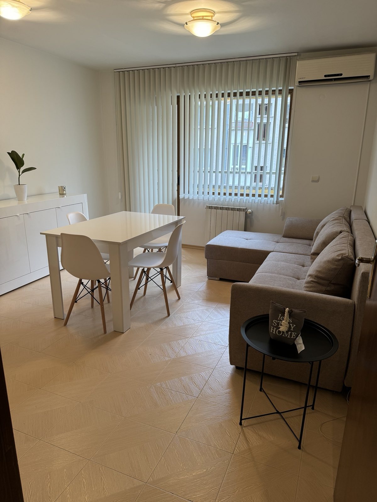 НОВА СГРАДА! СОБСТВЕНОСТ от ДВОРНО МЯСТО-ПАРКОМЕСТА! ТОП ИМОТ ЗА ЖИВЕЕНЕ ИЛИ ИНВЕСТИЦИЯ! Предлагаме на Вашето внимание компактен обзаведен апартамент в тухлена сграда от 2005г. в непосредствена близост до Петте кьошета и Руски паметник, и на 5 минути от метростанция 'Медицински Университет', НДК, бул.Витоша. Апартаментът е среден с южно изложение и гледка към вътрешен двор, което го прави изключително тих. Състои се от коридор- теракота, латекс; хол, свързан с кухненски бокс- теракота, латекс /вградена кухня с електро уреди, диван, скрин, маса със столове/; самостоятелна спалня, обзаведена със спален комплект, гардероб и скрин; баня и тоалетна- Т/Ф. От хола и спалнята се излиза на обща тераса. Изключително топъл и икономичен от към разходи апартамент.