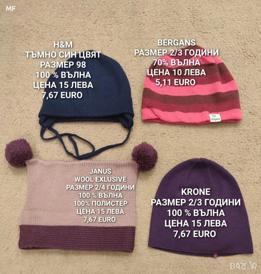 МЕРИНО ВЪЛНЕНИ ШАПКИ ЗА БЕБЕТА И ДЕЦА → Обява 53080585