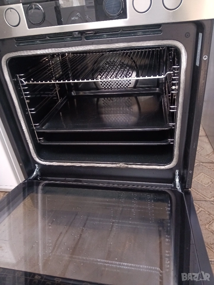 Страхотна печка с хубав запазен плот и фурна в която е печено няколко пъти! Вентилатор, грил, пуш бутони, часовник с тъчскрийн управление и др.