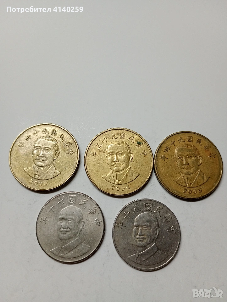 ТАЙВАН МОНЕТИ 50 ДОЛАРА 2004 2005 2007 Г 10 ДОЛАРА 1981 Г НЕЧИСТЕНИ ЦЕНА ЗА 5 БРОЯ СЪСТОЯНИЕ ОТЛИЧНО ПОЛУЧАВАТЕ СНИМАНИТЕ МОНЕТИ РАЗГЛЕДАЙТЕ ДРУГИТЕ МИ ОБЯВИ ДА КОМБИНИРАТЕ ДОСТАВКА ЕКОНТ ЗА ВАРНА ЛИЧНО