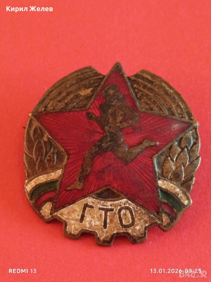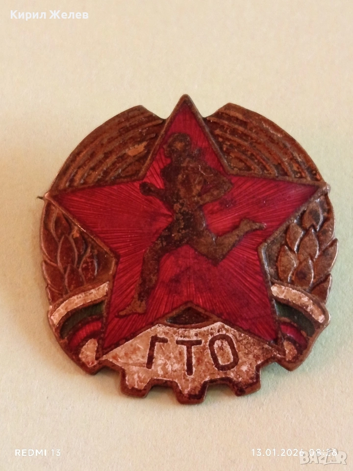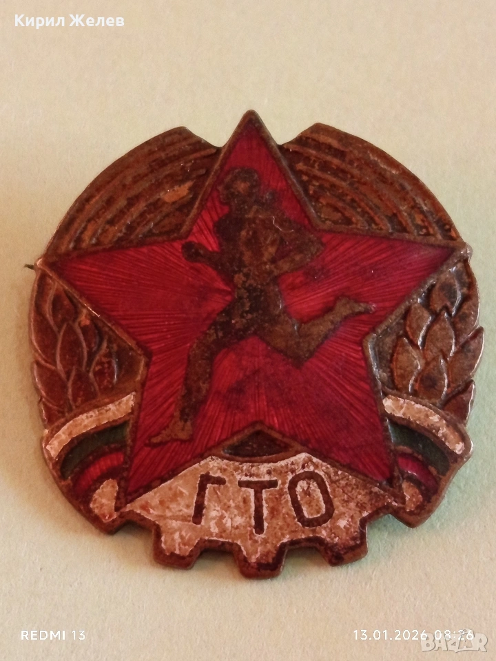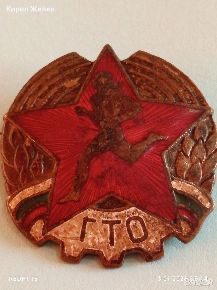 Нагръден знак ГОТОВ за ТРУД и ОТБРАНА от соца рядък с емайл 52825