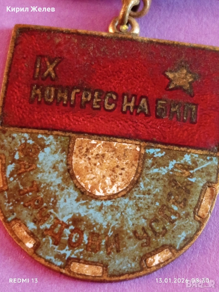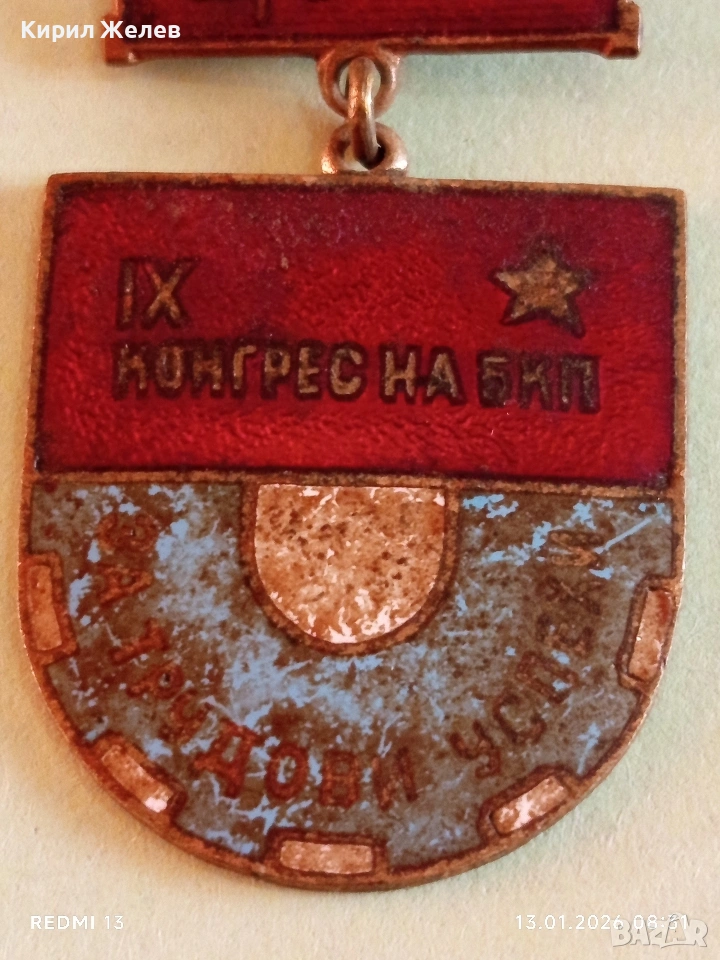 Знак 9-ти конгрес на БКП За трудови успехи с емайл за КОЛЕКЦИЯ 52808